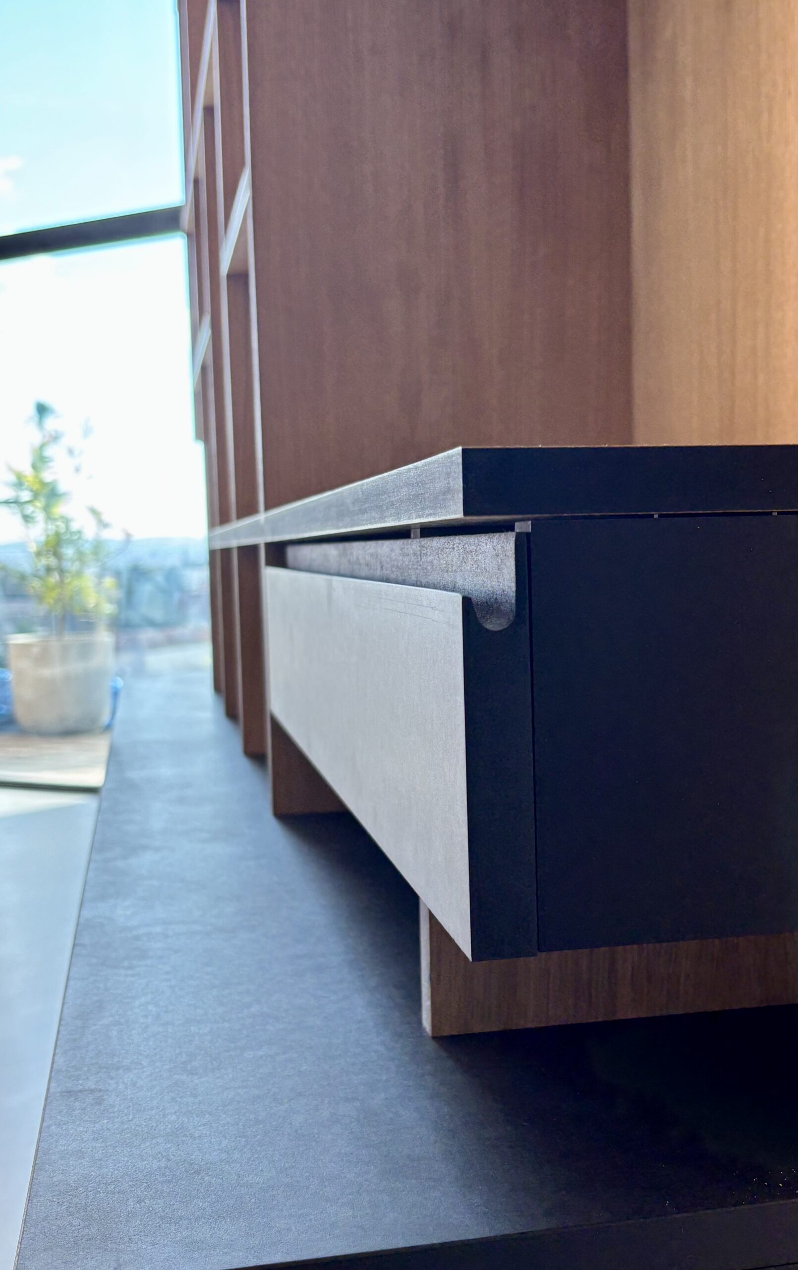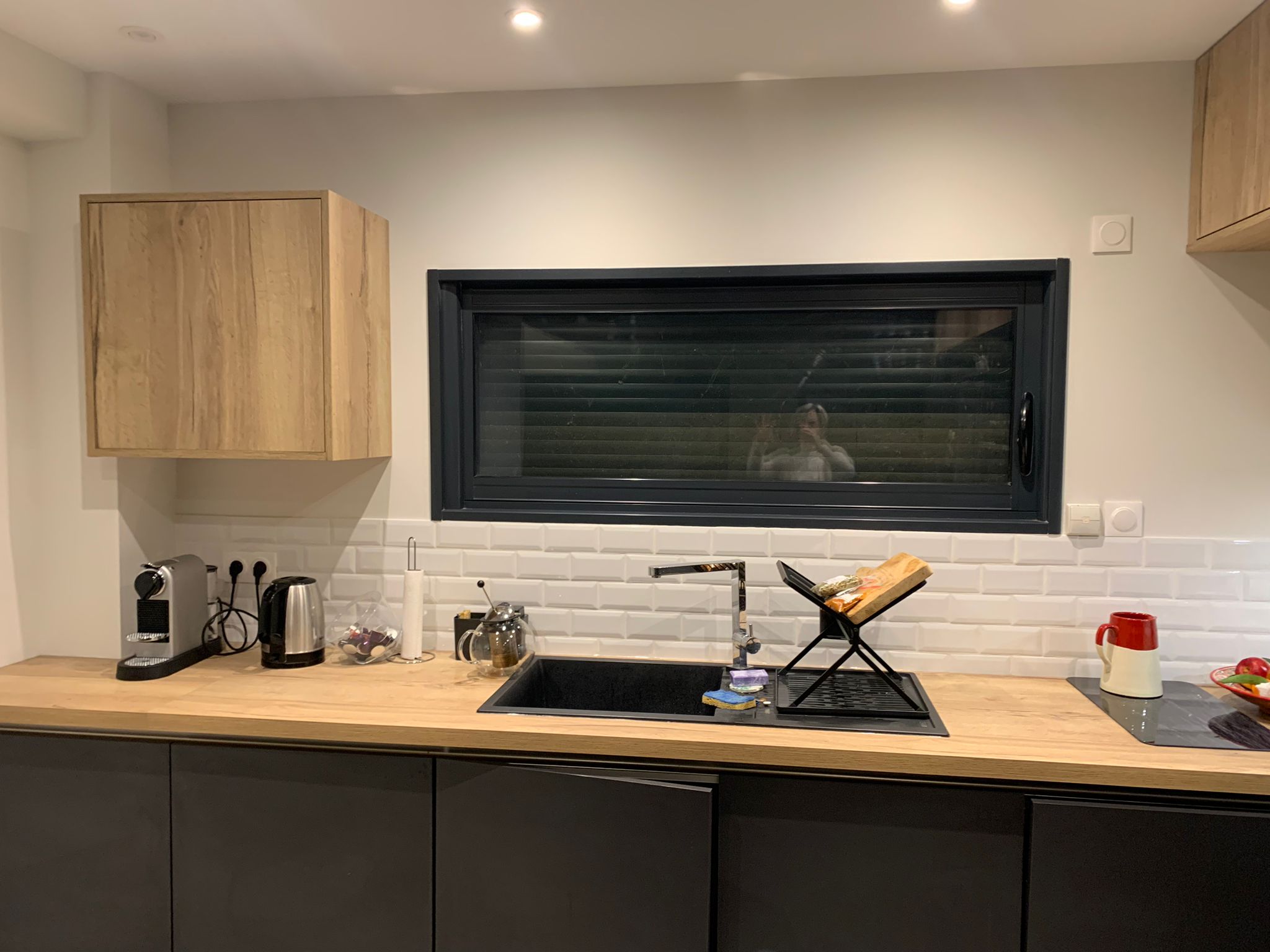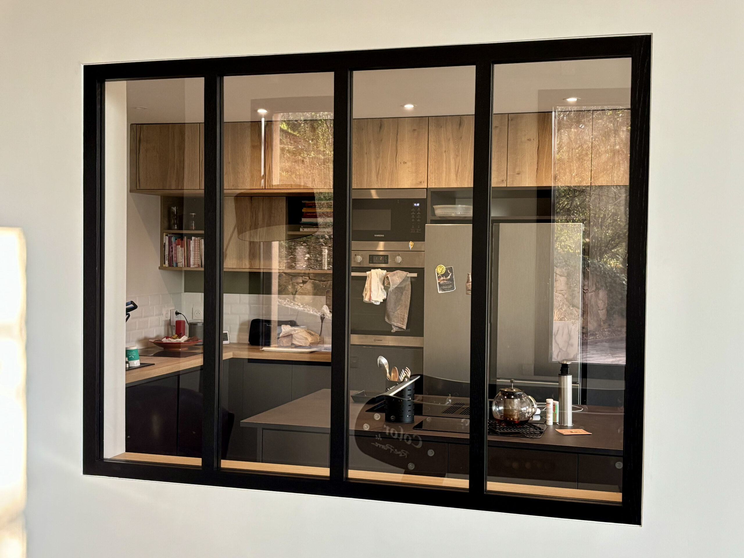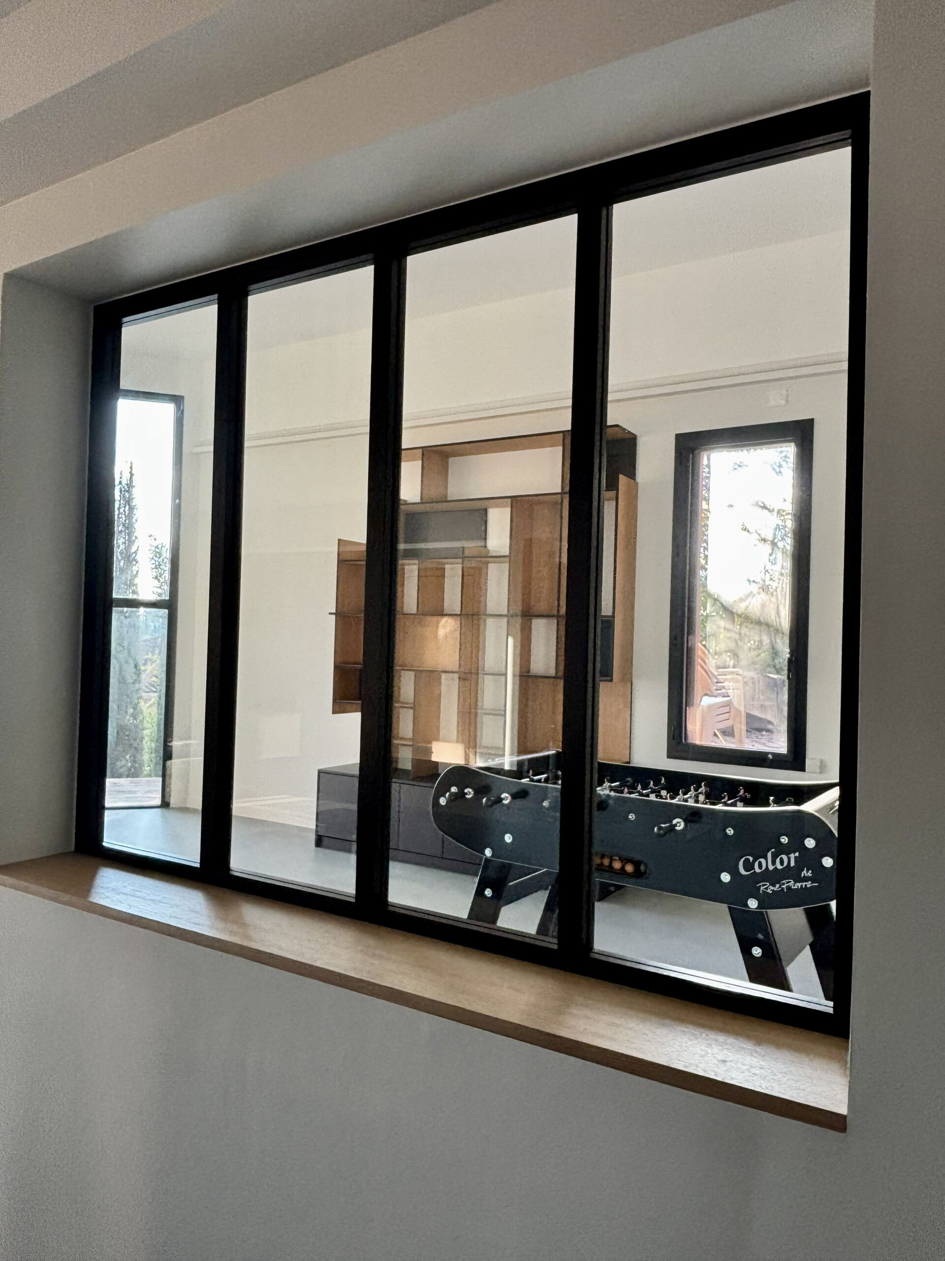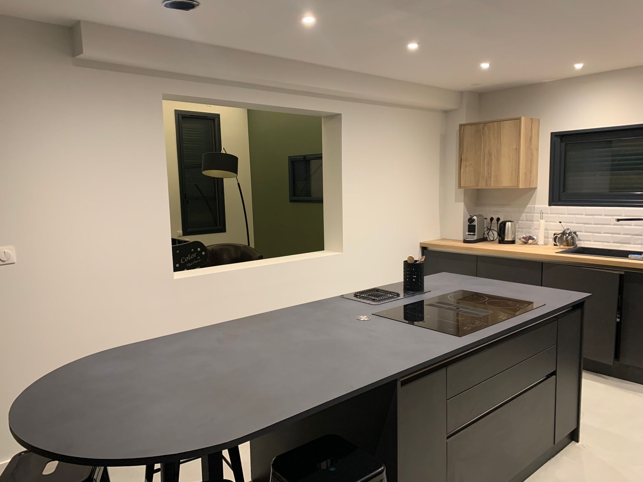 création d'une bibliothèque, mise en relations avec les artisans, réaménagement du rez de chaussée, rénovation de la cuisine, requalification de l'entrée, visuels 3D