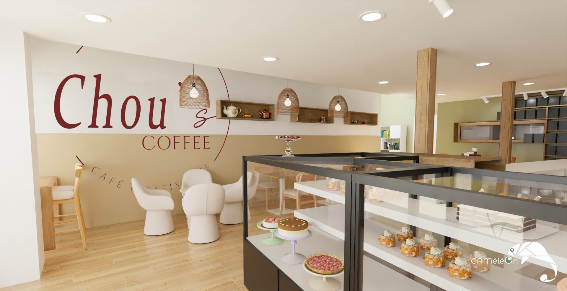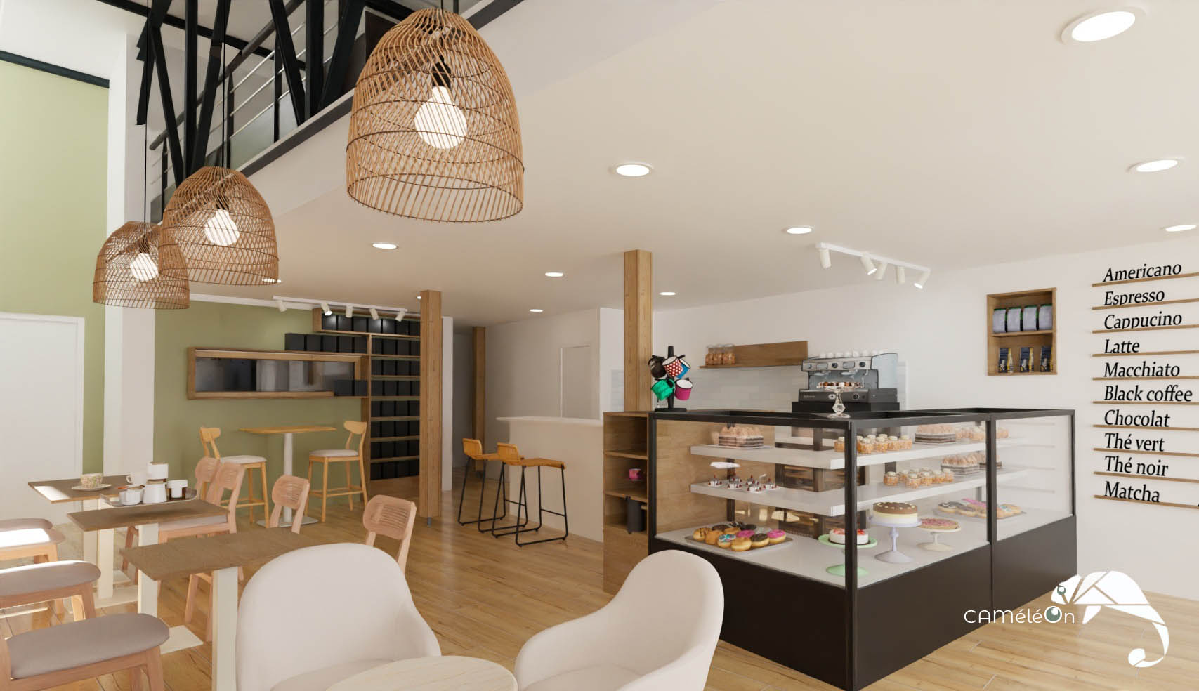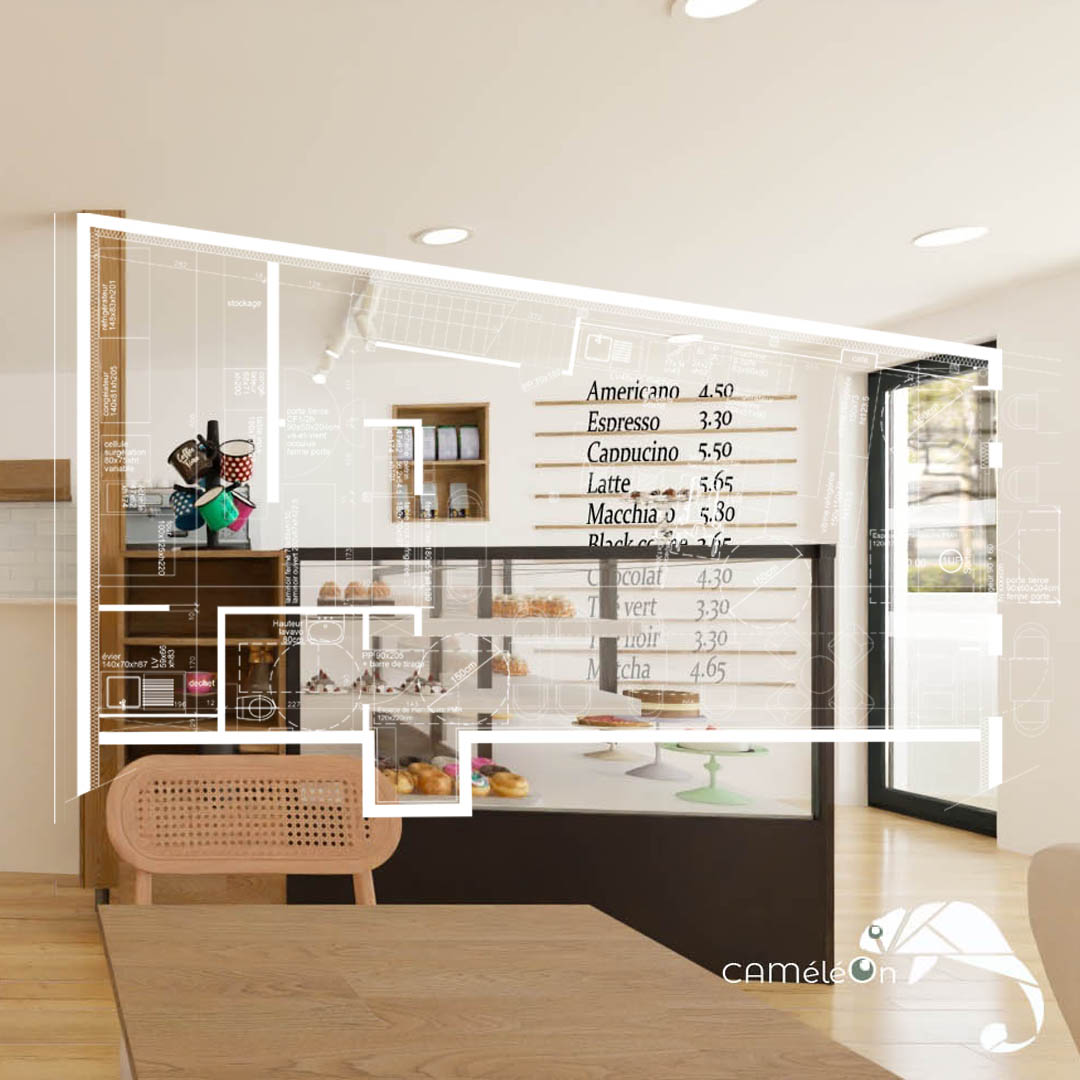 aménagement d'un commerce, coffee shop, métier de bouche/marche en avant, mises aux normes d'un ERP, pâtisserie, plans d'agencement, visuels 3D