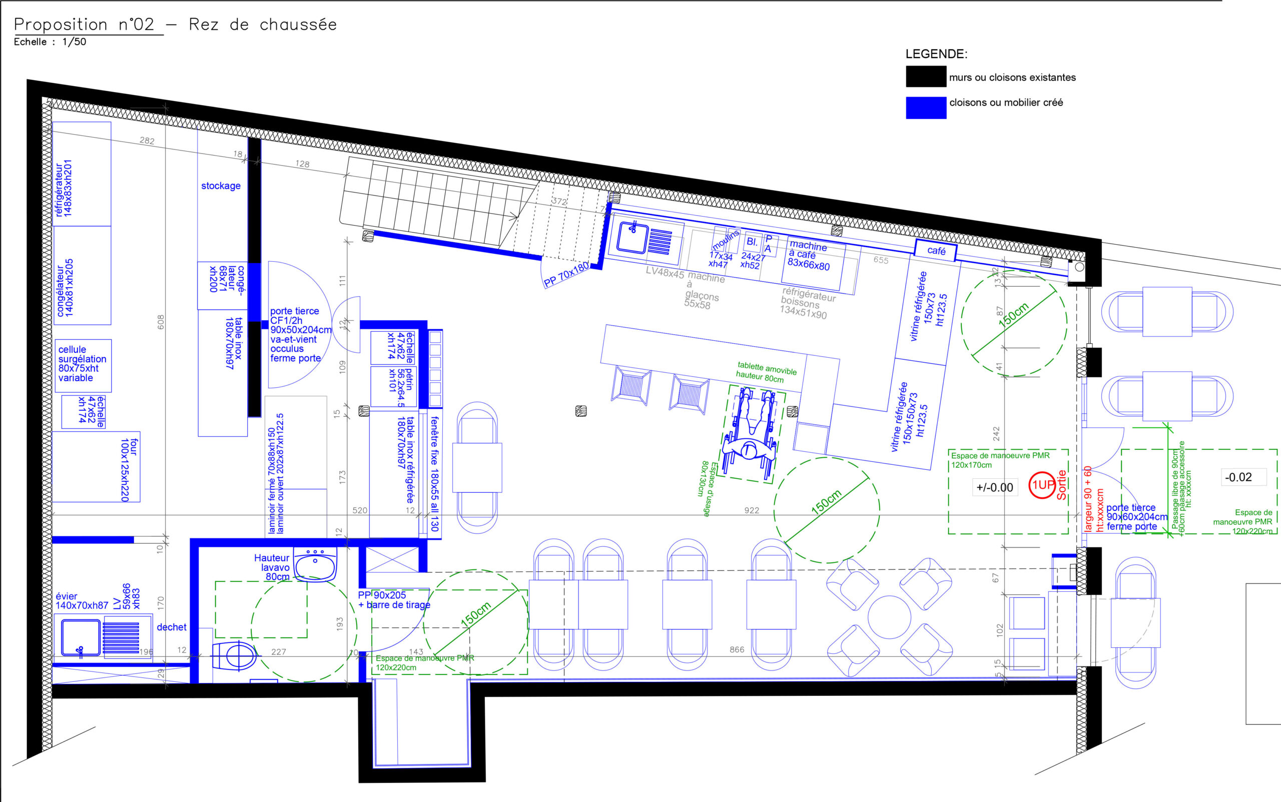 – réalisation des plans respectant les normes d’un ERP (Etablissement recevant du public) et les règlementations d’un métier de bouche: la marche en avant