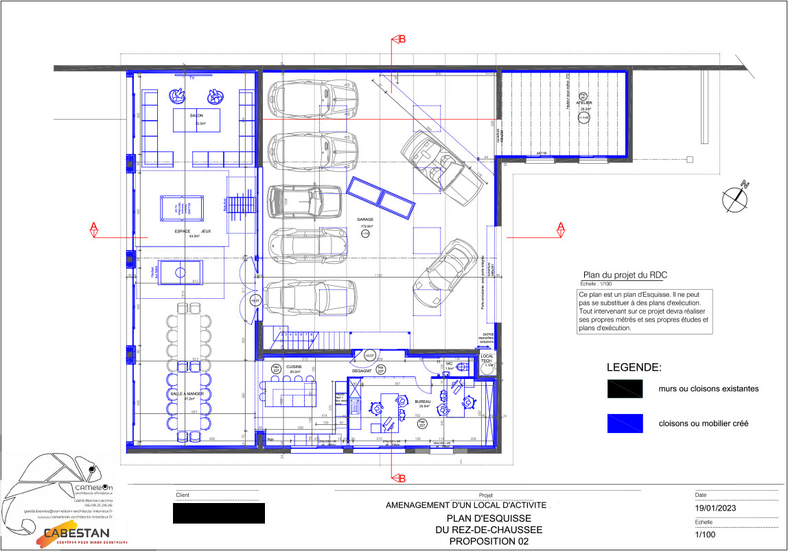 Réaménagement et conception (plans et visuels 3D) d’un local professionnel et d’un espace de vie.